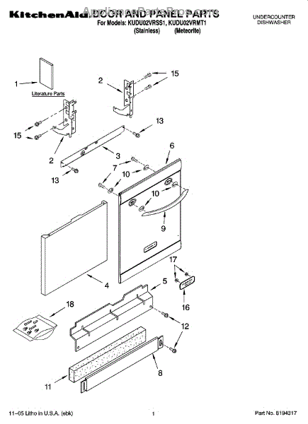 Parts for Kitchenaid KUDU02VRSS1: 01 - Door And Panel Parts