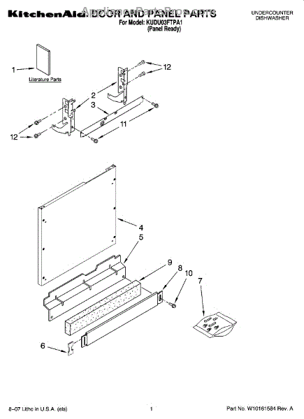 Parts for Kitchenaid KUDU03FTPA1: 01 - Door And Panel Parts