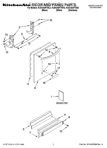 Parts for Kitchenaid KUDU03FTSS2: 01 - Door And Panel Parts