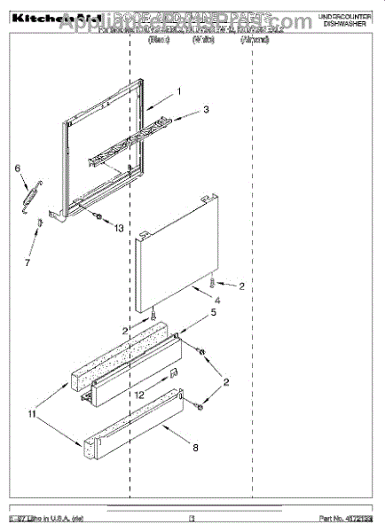Parts for Kitchenaid KUDV24SEAL2: 01 - Door And Panel Parts