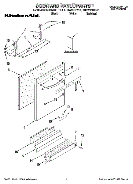 Parts for Kitchenaid KUDW03CTSS3: 01 - Door And Panel Parts