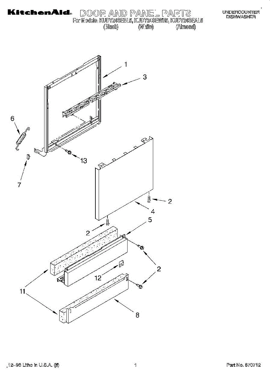 Parts for Kitchenaid KUDY24SEBL5: 01 - Door And Panel Parts