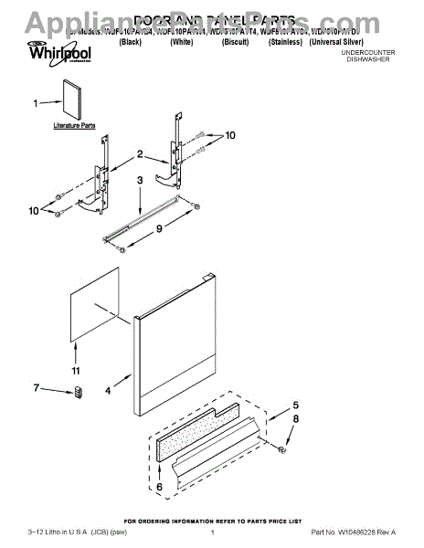 Parts for Whirlpool WDF510PAYB4: 01 - Door And Panel Parts