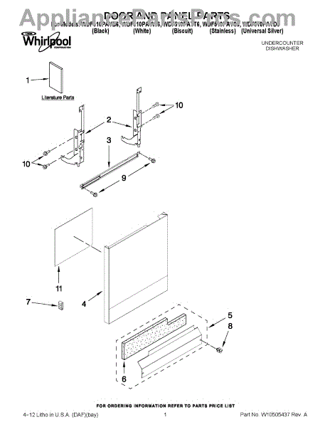 Parts for Whirlpool WDF510PAYD6: 01 - Door And Panel Parts