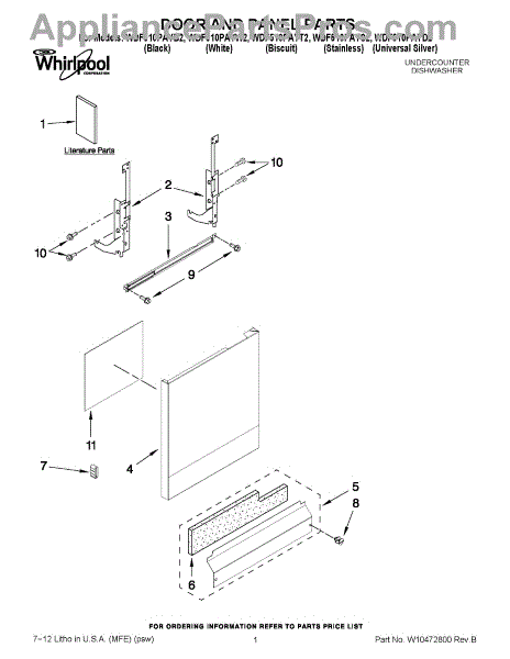 Parts for Whirlpool WDF510PAYT2: 01 - Door And Panel Parts