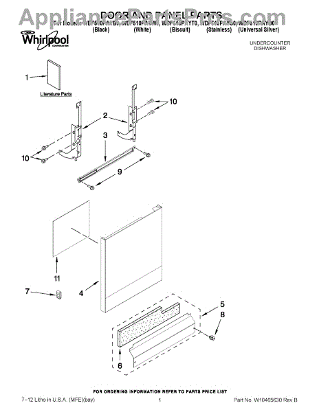 Parts for Whirlpool WDF510PAYW0: 01 - Door And Panel Parts