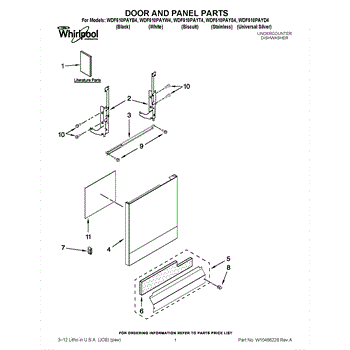 Parts for Whirlpool WDF510PAYW4: 01 - Door And Panel Parts