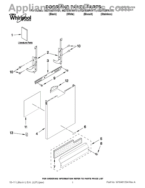 The Panel (BLK) is an OEM part for Whirlpool dishwashers. This black exterior panel is designed to provide a sleek and durable front surface for the dishwasher, enhancing its appearance and protecting internal components.