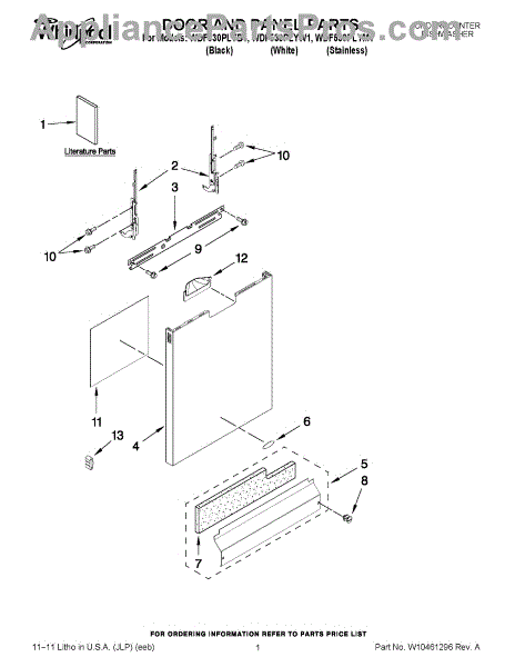 Parts for Whirlpool WDF530PLYB1: 01 - Door And Panel Parts