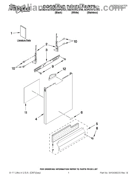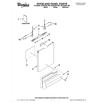 The Panel (BLK) is an OEM part for Whirlpool dishwashers. This black exterior panel is designed to provide a sleek and durable front surface for the dishwasher, enhancing its appearance and protecting internal components.