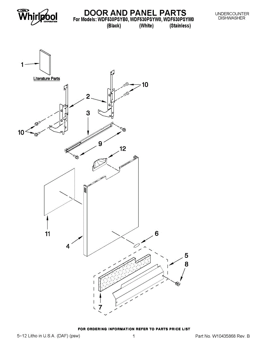 White front access panel for dishwasher door. Replace worn, discolored, or damaged panels to restore your dishwasher's appearance. Direct fit installation.