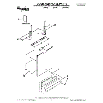The Panel (BLK) is an OEM part for Whirlpool dishwashers. This black exterior panel is designed to provide a sleek and durable front surface for the dishwasher, enhancing its appearance and protecting internal components.