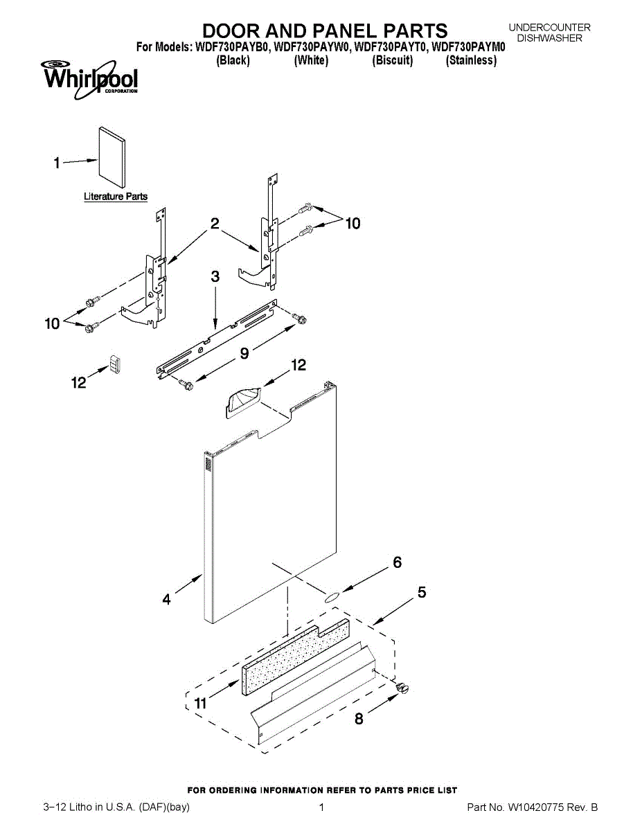 White front access panel for dishwasher door. Replace worn, discolored, or damaged panels to restore your dishwasher's appearance. Direct fit installation.