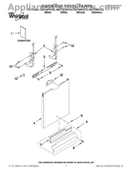 The Panel (BLK) is an OEM part for Whirlpool dishwashers. This black exterior panel is designed to provide a sleek and durable front surface for the dishwasher, enhancing its appearance and protecting internal components.