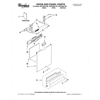 The Panel (BLK) is an OEM part for Whirlpool dishwashers. This black exterior panel is designed to provide a sleek and durable front surface for the dishwasher, enhancing its appearance and protecting internal components.
