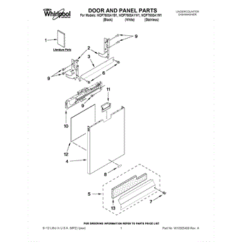 The Panel (BLK) is an OEM part for Whirlpool dishwashers. This black exterior panel is designed to provide a sleek and durable front surface for the dishwasher, enhancing its appearance and protecting internal components.