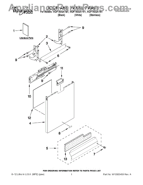 The Panel (BLK) is an OEM part for Whirlpool dishwashers. This black exterior panel is designed to provide a sleek and durable front surface for the dishwasher, enhancing its appearance and protecting internal components.