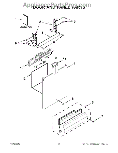 The Panel (BLK) is an OEM part for Whirlpool dishwashers. This black exterior panel is designed to provide a sleek and durable front surface for the dishwasher, enhancing its appearance and protecting internal components.