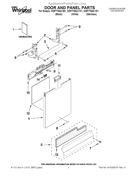 The Panel (BLK) is an OEM part for Whirlpool dishwashers. This black exterior panel is designed to provide a sleek and durable front surface for the dishwasher, enhancing its appearance and protecting internal components.