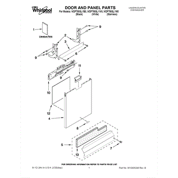 The Panel (BLK) is an OEM part for Whirlpool dishwashers. This black exterior panel is designed to provide a sleek and durable front surface for the dishwasher, enhancing its appearance and protecting internal components.