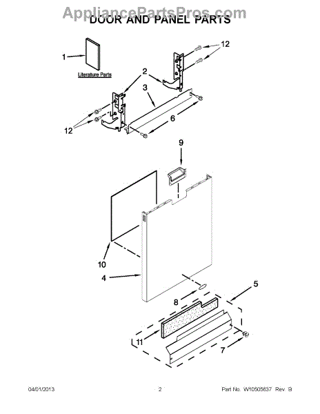 The Panel (BLK) is an OEM part for Whirlpool dishwashers. This black exterior panel is designed to provide a sleek and durable front surface for the dishwasher, enhancing its appearance and protecting internal components.