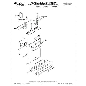 The Panel (BLK) is an OEM part for Whirlpool dishwashers. This black exterior panel is designed to provide a sleek and durable front surface for the dishwasher, enhancing its appearance and protecting internal components.