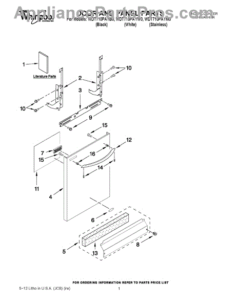 The Panel (BLK) is an OEM part for Whirlpool dishwashers. This black exterior panel is designed to provide a sleek and durable front surface for the dishwasher, enhancing its appearance and protecting internal components.