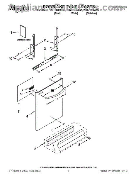 The Panel (BLK) is an OEM part for Whirlpool dishwashers. This black exterior panel is designed to provide a sleek and durable front surface for the dishwasher, enhancing its appearance and protecting internal components.