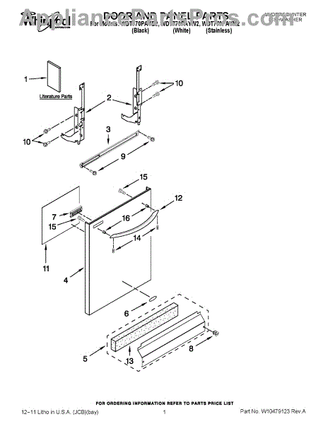 White front access panel for dishwasher door. Replace worn, discolored, or damaged panels to restore your dishwasher's appearance. Direct fit installation.
