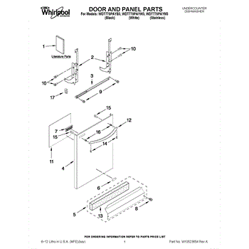 The Panel (BLK) is an OEM part for Whirlpool dishwashers. This black exterior panel is designed to provide a sleek and durable front surface for the dishwasher, enhancing its appearance and protecting internal components.