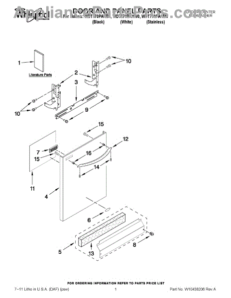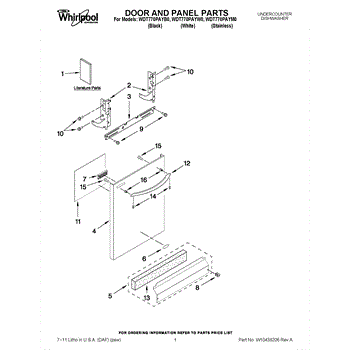 The Panel (BLK) is an OEM part for Whirlpool dishwashers. This black exterior panel is designed to provide a sleek and durable front surface for the dishwasher, enhancing its appearance and protecting internal components.
