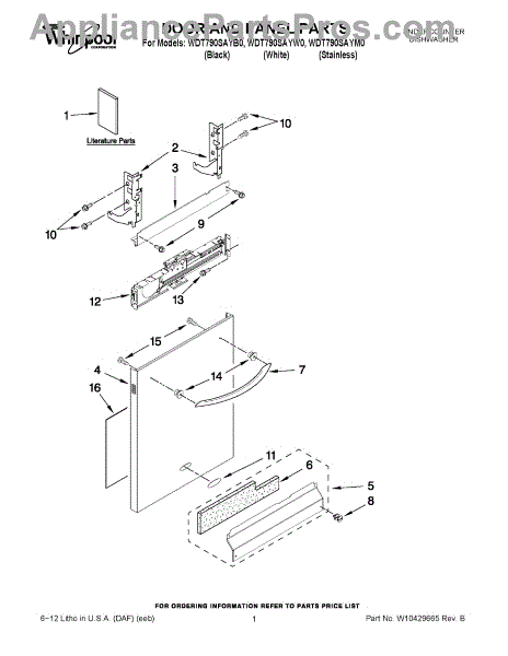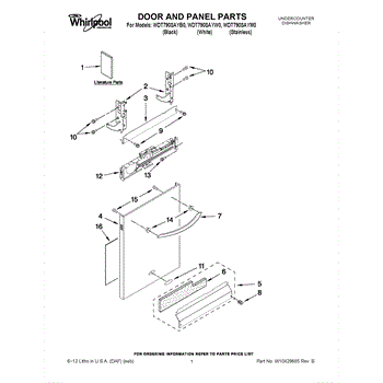 The Panel (BLK) is an OEM part for Whirlpool dishwashers. This black exterior panel is designed to provide a sleek and durable front surface for the dishwasher, enhancing its appearance and protecting internal components.