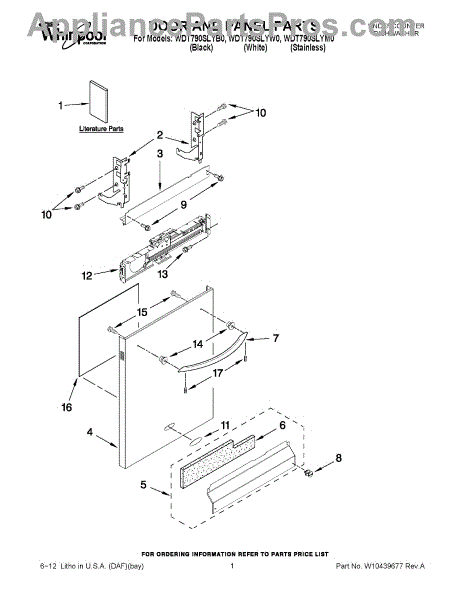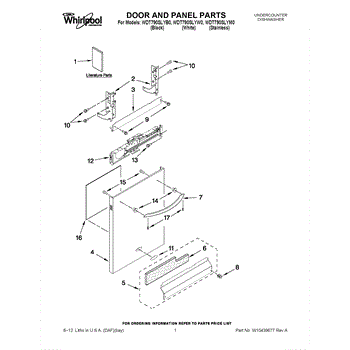 The Panel (BLK) is an OEM part for Whirlpool dishwashers. This black exterior panel is designed to provide a sleek and durable front surface for the dishwasher, enhancing its appearance and protecting internal components.