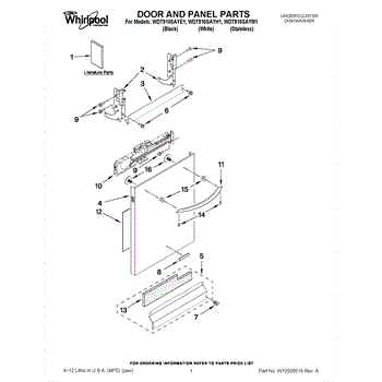 The Panel (BLK) is an OEM part for Whirlpool dishwashers. This black exterior panel is designed to provide a sleek and durable front surface for the dishwasher, enhancing its appearance and protecting internal components.