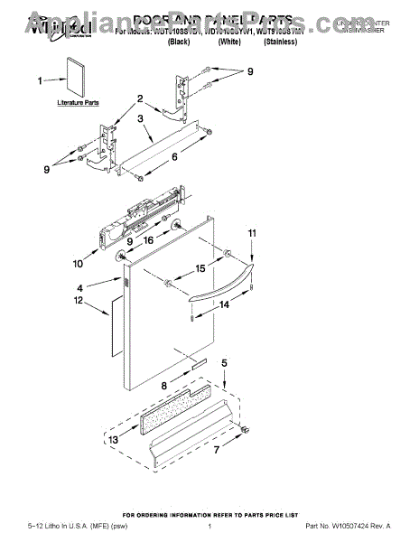 The Panel (BLK) is an OEM part for Whirlpool dishwashers. This black exterior panel is designed to provide a sleek and durable front surface for the dishwasher, enhancing its appearance and protecting internal components.