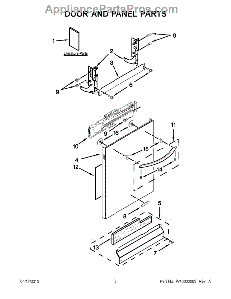 The Panel (BLK) is an OEM part for Whirlpool dishwashers. This black exterior panel is designed to provide a sleek and durable front surface for the dishwasher, enhancing its appearance and protecting internal components.