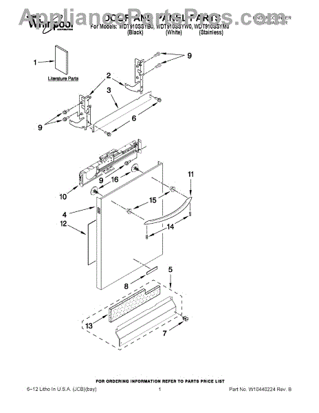 The Panel (BLK) is an OEM part for Whirlpool dishwashers. This black exterior panel is designed to provide a sleek and durable front surface for the dishwasher, enhancing its appearance and protecting internal components.