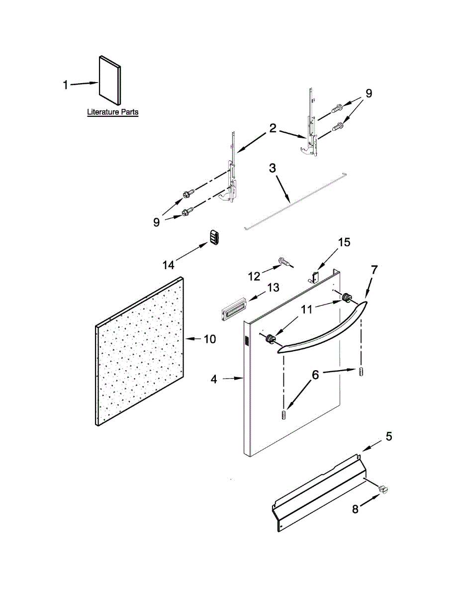 The Panel (BLK) is an OEM part for Whirlpool dishwashers. This black exterior panel is designed to provide a sleek and durable front surface for the dishwasher, enhancing its appearance and protecting internal components.