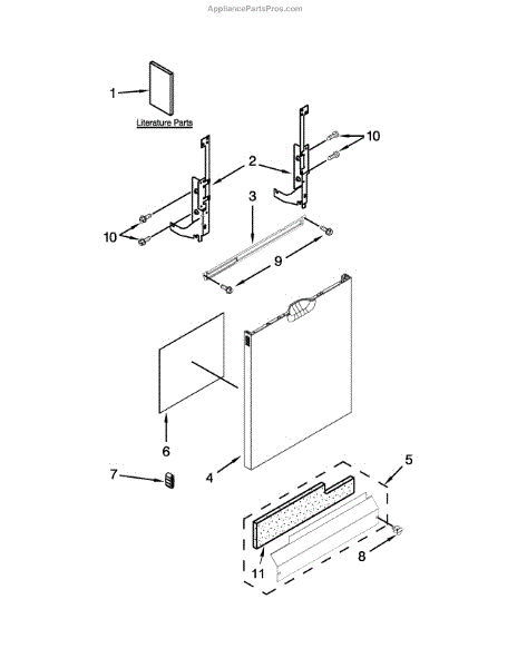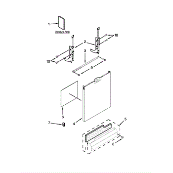 The Panel (BLK) is an OEM part for Whirlpool dishwashers. This black exterior panel is designed to provide a sleek and durable front surface for the dishwasher, enhancing its appearance and protecting internal components.