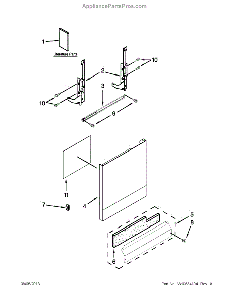 The Panel (BLK) is an OEM part for Whirlpool dishwashers. This black exterior panel is designed to provide a sleek and durable front surface for the dishwasher, enhancing its appearance and protecting internal components.