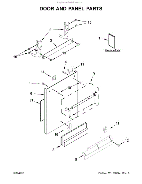 The Door Hinge (RH) is an OEM replacement part for Whirlpool dishwashers. This hinge is installed on the right-hand side of the dishwasher door, allowing it to open and close smoothly while maintaining the proper tension and alignment. The hinge plays a crucial role in ensuring the door seals securely during operation, preventing leaks and enabling efficient cleaning performance.