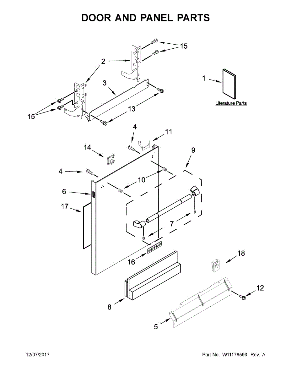 The Door Hinge (RH) is an OEM replacement part for Whirlpool dishwashers. This hinge is installed on the right-hand side of the dishwasher door, allowing it to open and close smoothly while maintaining the proper tension and alignment. The hinge plays a crucial role in ensuring the door seals securely during operation, preventing leaks and enabling efficient cleaning performance.