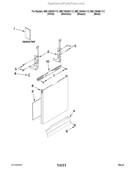 Parts for Kenmore 662.13049K112 (66213049K112, 662 13049K112): Door And Panel Parts