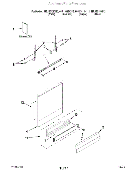 Parts for Kenmore 665.13019K112 (66513019K112, 665 13019K112): Door And Panel Parts