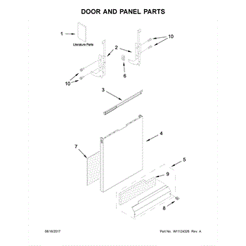 The Panel (BLK) is an OEM part for Whirlpool dishwashers. This black exterior panel is designed to provide a sleek and durable front surface for the dishwasher, enhancing its appearance and protecting internal components.