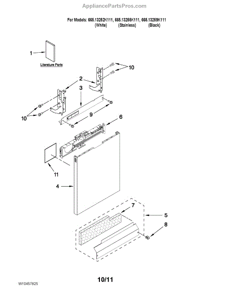 Parts for Kenmore 665.13255K111 (66513255K111, 665 13255K111): Door And Panel Parts