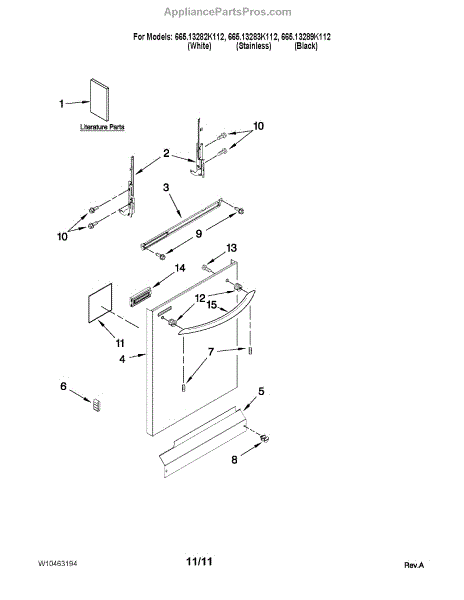 This access panel covers the lower front of the appliance to shield internal components and provide a clean, finished look. Replace a dented, cracked, or missing panel to restore appearance and help keep debris away from sensitive parts.