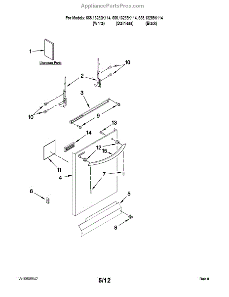 Parts for Kenmore 665.13282K114 (66513282K114, 665 13282K114): Door And Panel Parts