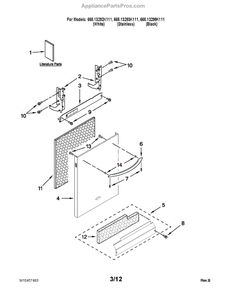 Parts for Kenmore 665.13292K111 (66513292K111, 665 13292K111): Door And Panel Parts