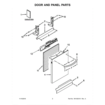 The Outer Door Panel is an OEM part for Whirlpool dishwashers. This sleek, durable panel forms the external face of the dishwasher door, contributing to the kitchen's overall look while shielding the dishwasher's operational parts from external damage.
